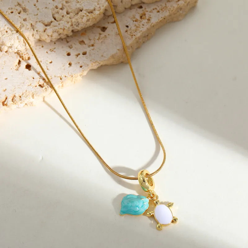 Delicately crafted, the Aqua Turtle Necklace features a graceful white-and-gold turtle pendant paired with a vibrant turquoise stone—capturing the peaceful spirit and colors of the ocean.