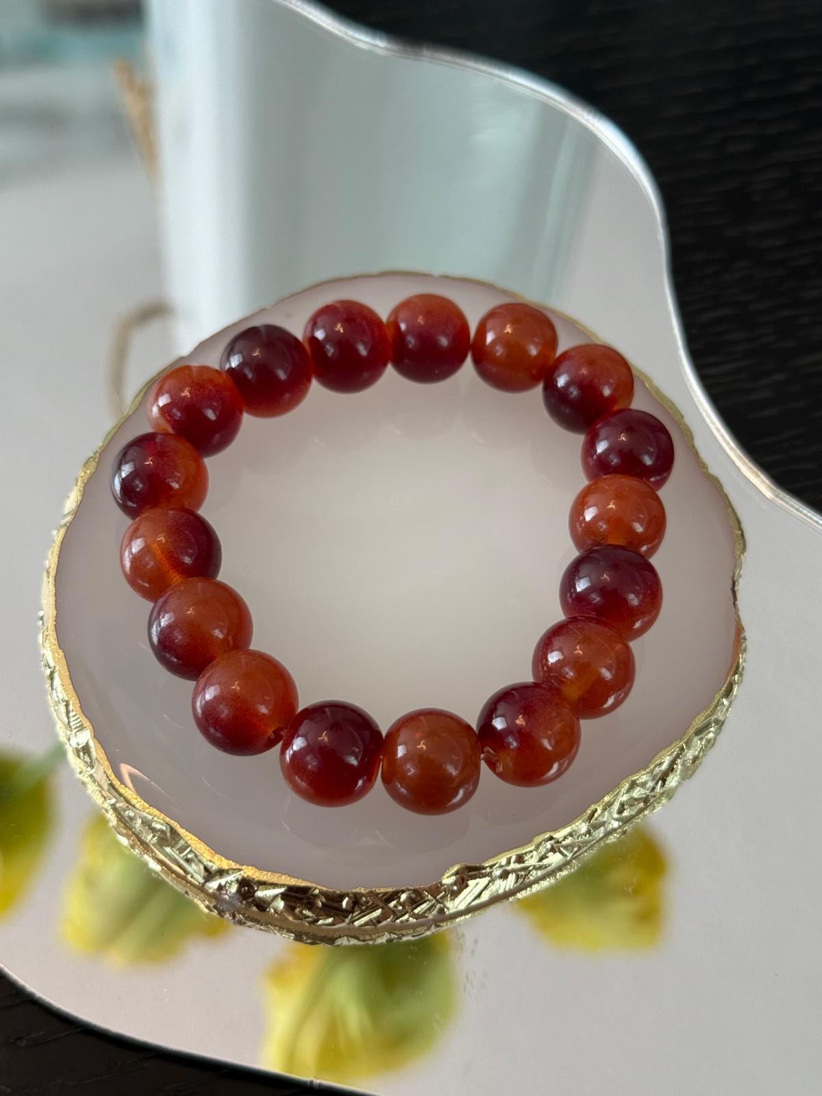 A men’s bracelet crafted with crystal beads in deep red and wine tones, designed for a bold and refined look.